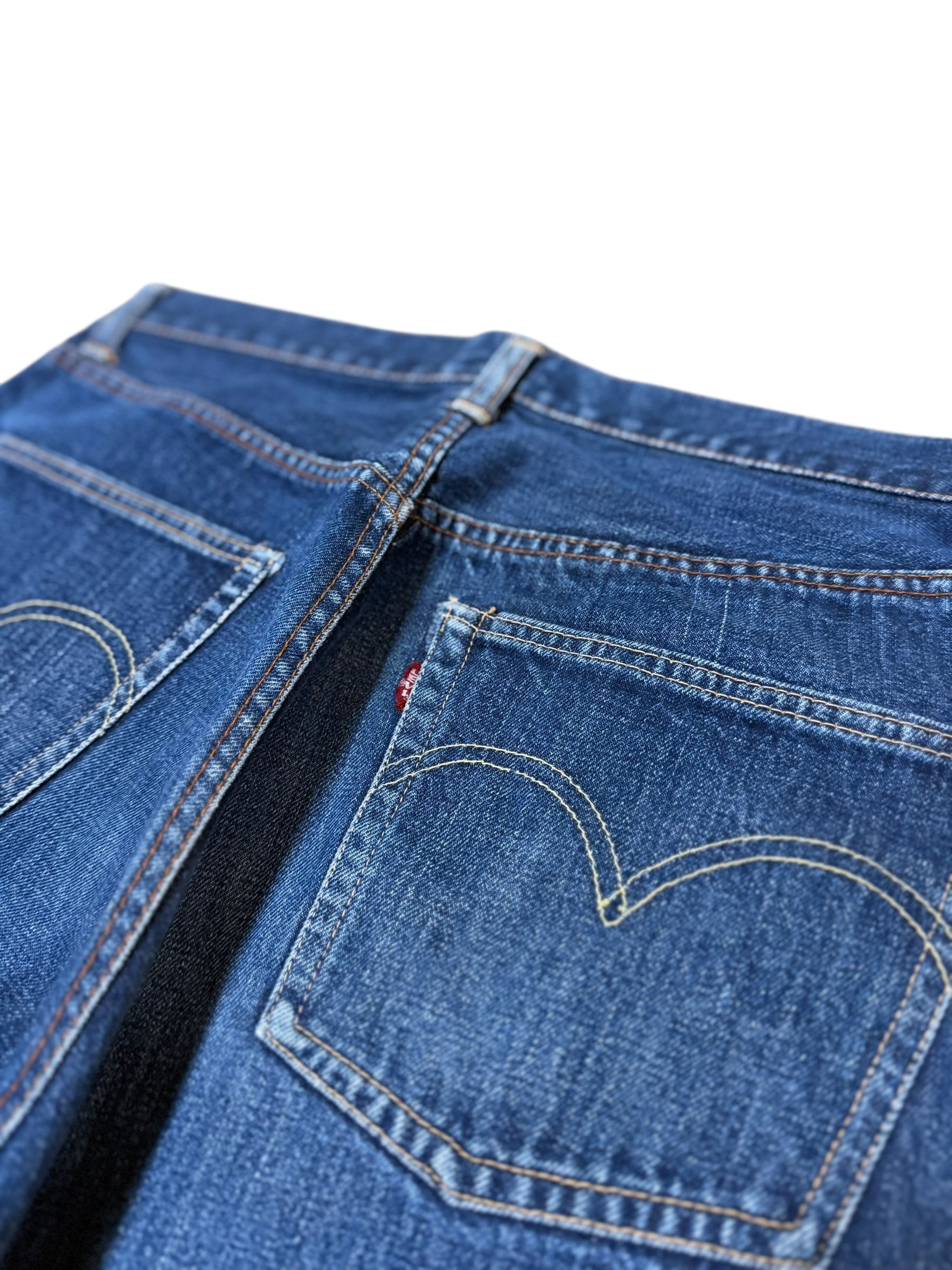 バックポケットのアーキュエイトもイエローの綿糸。一見XXと見間違う程