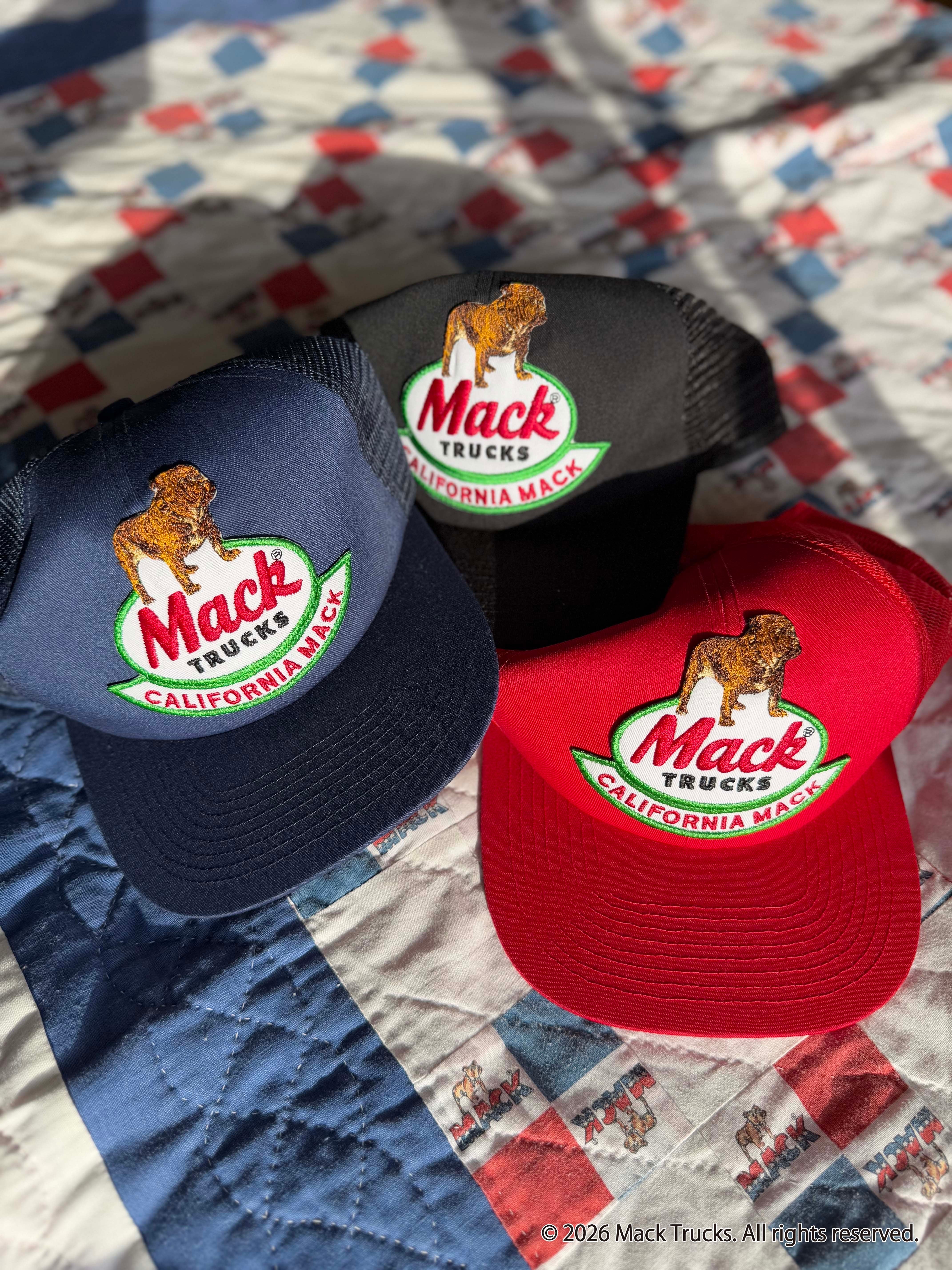 フロントのワッペンは、Mack Trucksらしい無骨さを大切にしながら